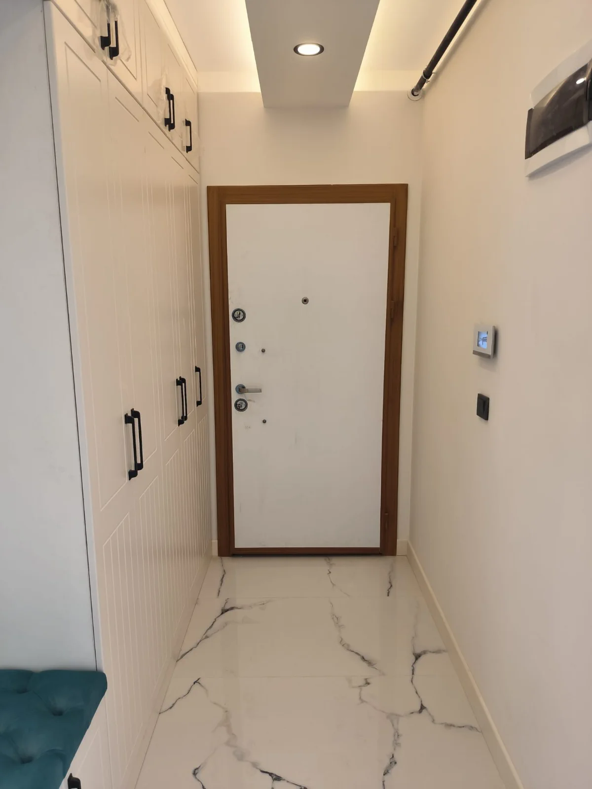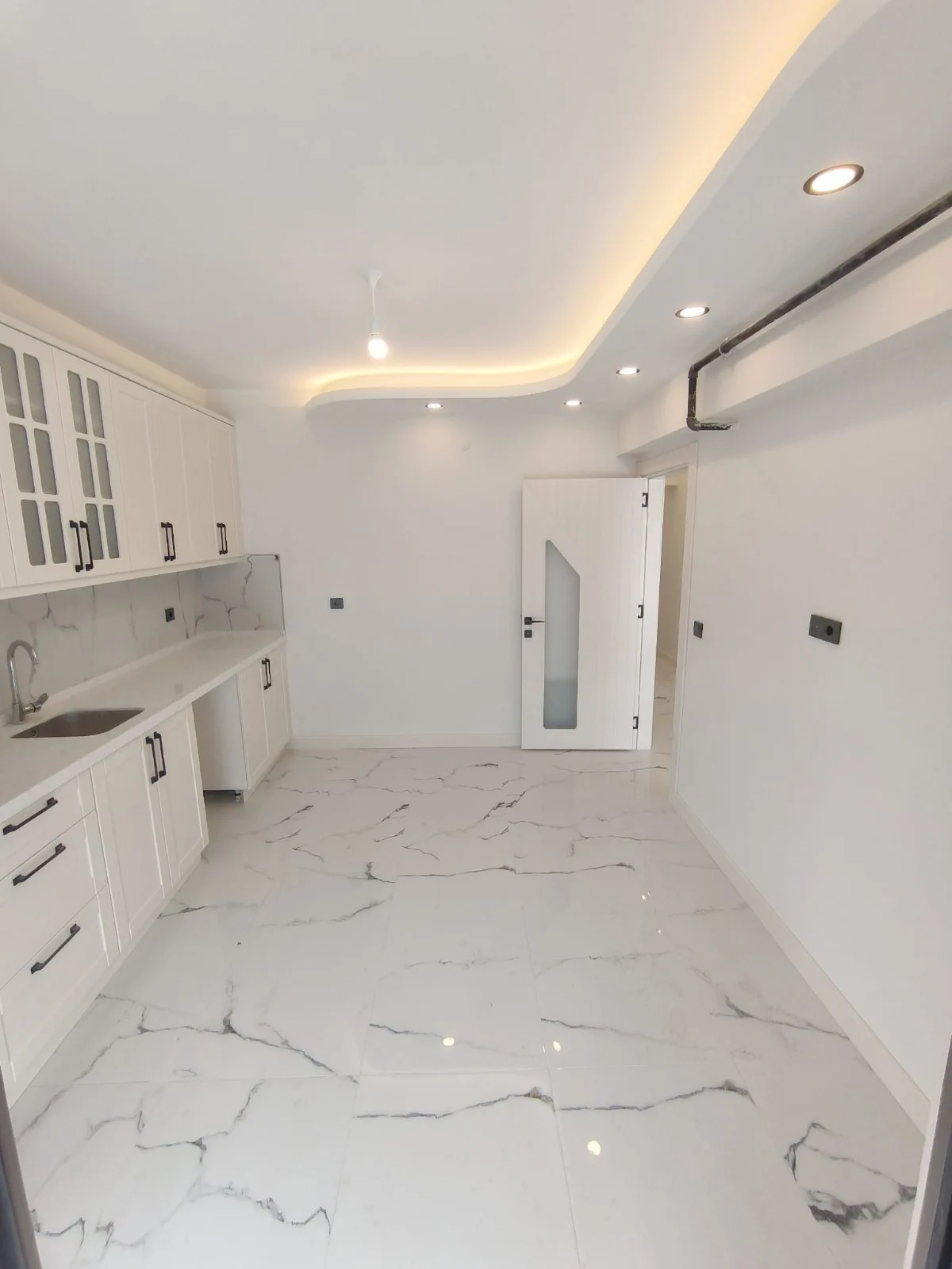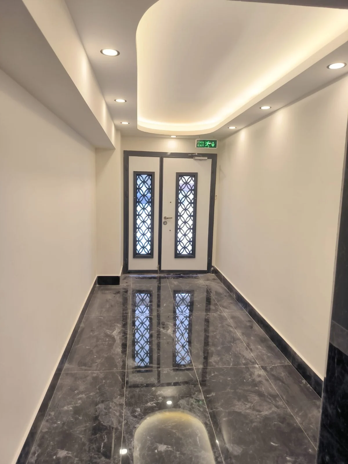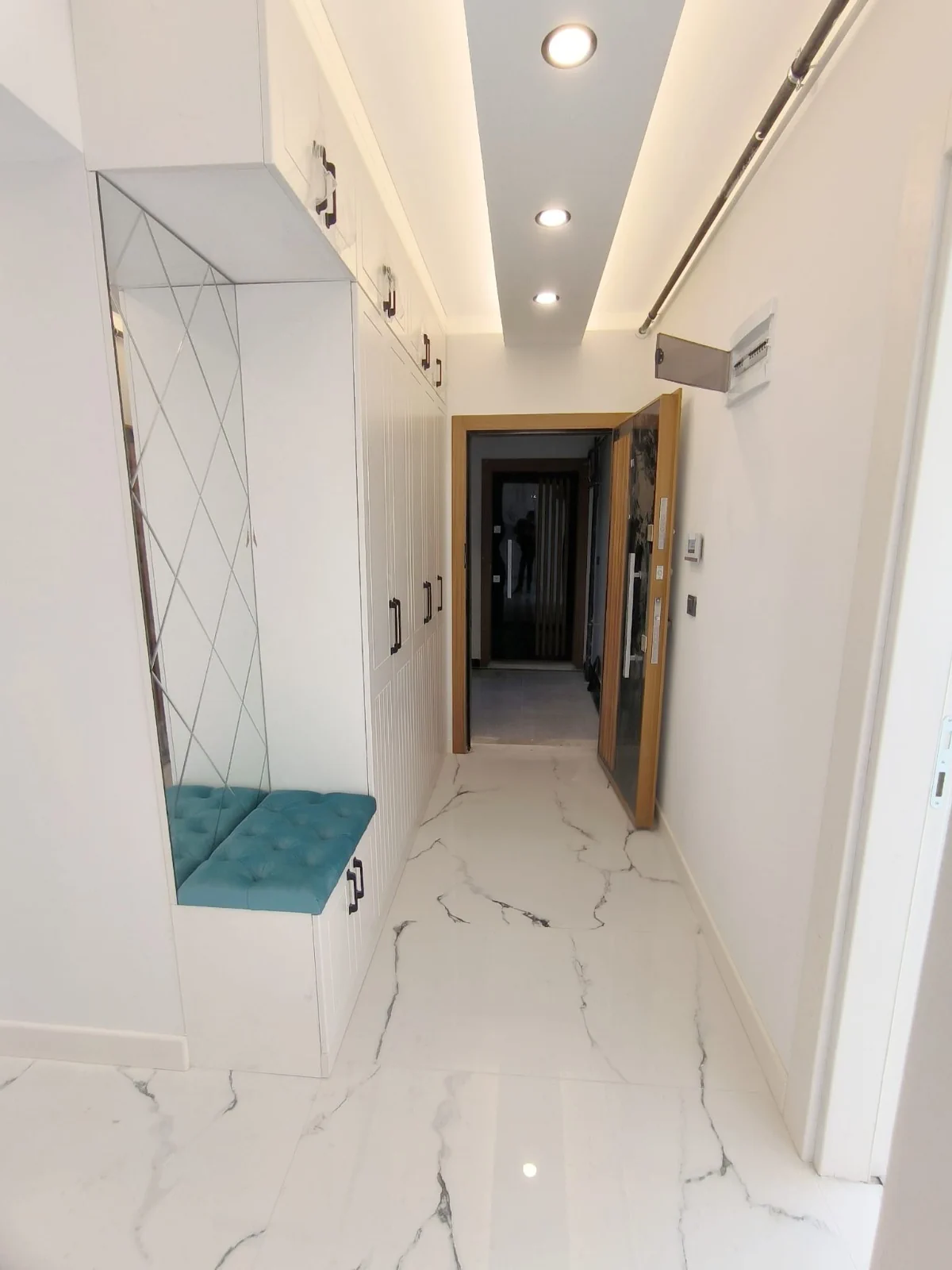 Estetik Aydınlatma Tasarımı: Salon, koridor, mutfak ve ebeveyn yatak odasında uygulanan özel ışık bariyeri ve spot aydınlatma sistemleri ile modern bir ambiyans.