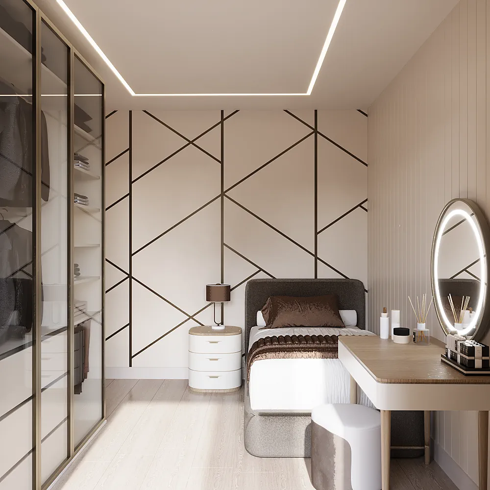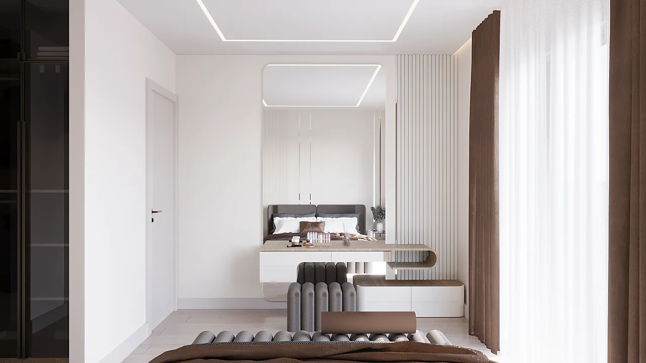 Full Donanımlı Bölümler: Mimari projeye dahil olan hazır giyinme odası dolapları ve fonksiyonel çamaşır/depolama nişi.